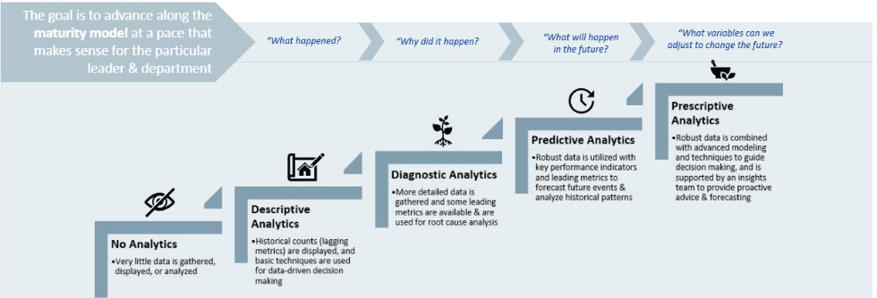 A well-defined maturity model provides a path for continual improvement, helping organizations evolve from Descriptive Analytics (historical trends and lagging indicators) to Diagnostic Analytics (root cause analysis), and eventually to Predictive and Prescriptive Analytics (forecasting future scenarios and recommending optimal actions). This evolution ensures that leadership can proactively plan for tomorrow’s challenges rather than merely reacting to today’s issues.