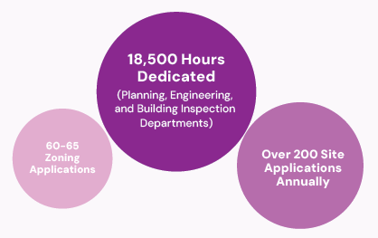 Dillon Morgan Consulting (DMC) recently partnered with a suburban city in the Dallas- Fort Worth area to revamp its development processes. The city, with a population of 250,000+, having reached full occupancy with no remaining vacant land, faces a pivotal juncture in its urban evolution. As a mature urban center, it must now pivot its focus towards redevelopment initiatives to foster future growth and vitality. This transition from greenfield development to urban renewal represents a critical shift in the city’s approach to sustainable expansion and economic revitalization. Its planning department processes approximately 60–65 zoning applications and over 200 site applications annually, of which about <25% site permits are issued. The city’s three key departments – planning, engineering, and building inspection – collectively dedicate an estimated 18,500 hours annually to the front end of the development process.